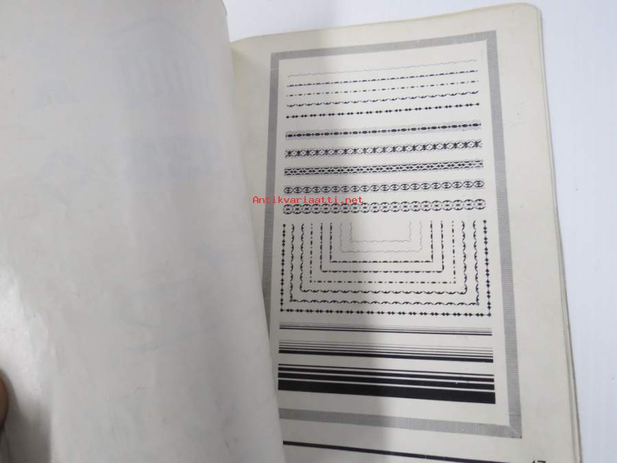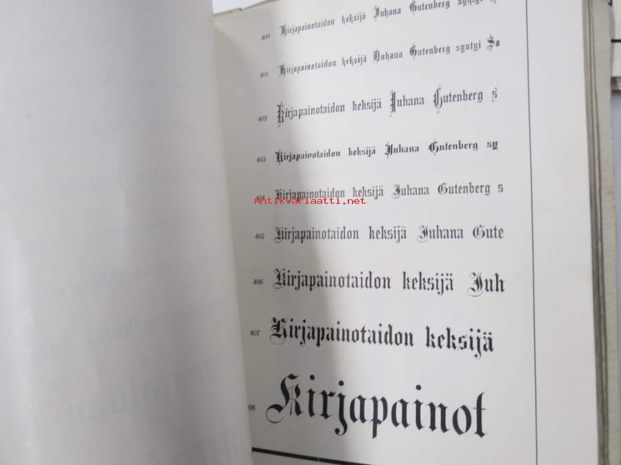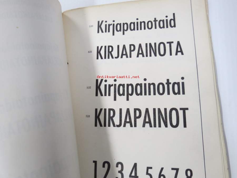 16 x 22 cm kirjat, joissa tekstimallit kirjapainon kirjasinvalikoimista.