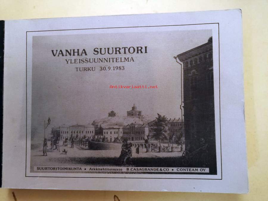 VANHA SUURTORI YLEISSUUNNITELMA, TURKU 30.9.1983.Tämän esisuunnitelman tarkoituksena on selvittää ne periaatteet joiden mukaan Turun vanhan keskustan (ns. Vanhan Suurtorin alueen) rakennusten käyttöä tulisi kehittää ja kuntoa kohentaa sen jälkeen. kun ne vapautuvat v. 1984 (1985) lähtien nykyisestä käytöstään.Tehtävää hoitamaan asetti kaupunginhallitus 27.12.1979 ns. "Suurtori-toimikunnan".Suurtoritoimikunnan työ on edennyt kahdessa vaiheessa tämän raportin loppuun saattamiseen.
