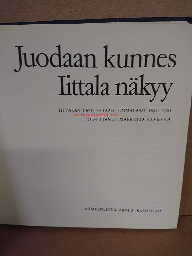 Juodaan kunnes Iittala näkyy. Iittalan lasitehtaan juomalasit 1881 - 1981. (Lasikuvasto, keräily)