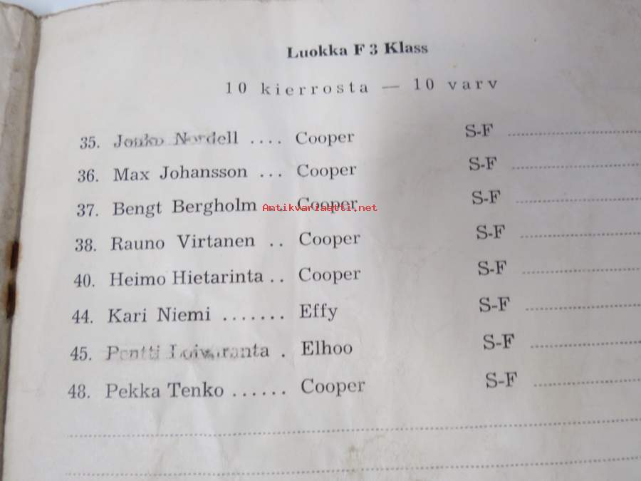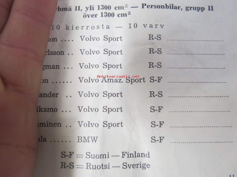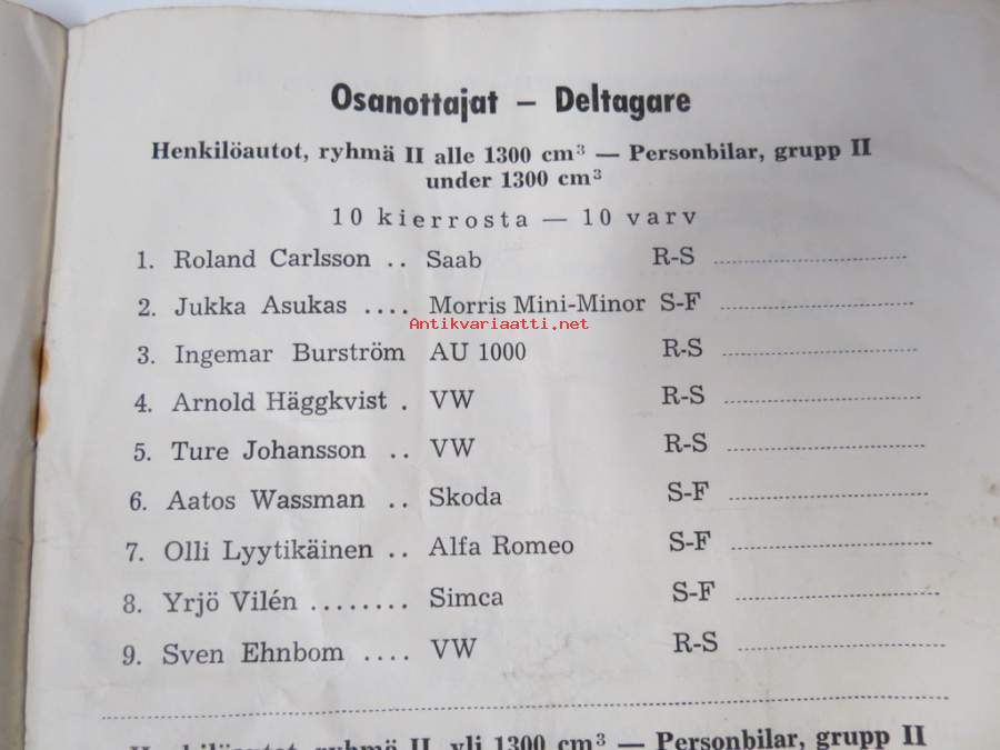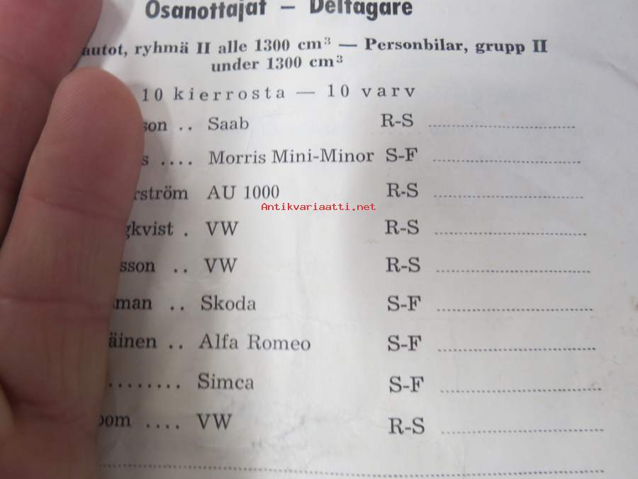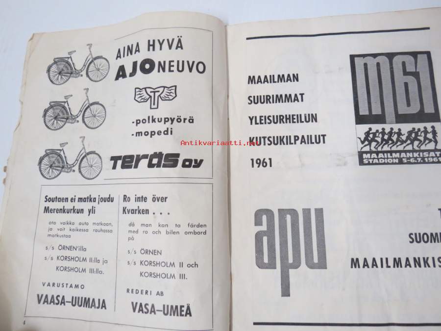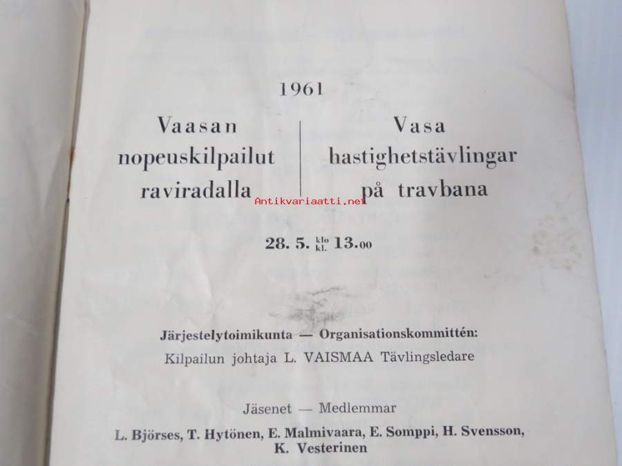 Vaasan nopeuskilpa - Vasa hastighetstävlingar 28.5.1961 -käsiohjelma