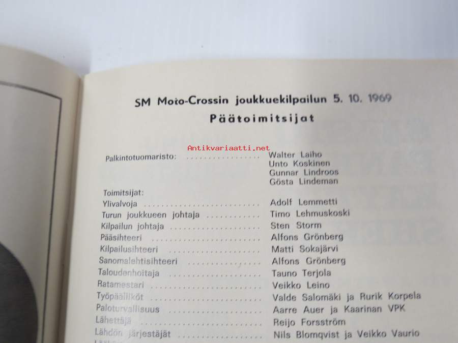 SM Moto-Cross joukkuekilpailu Artukaisissa 5.10.1969 -käsiohjelma