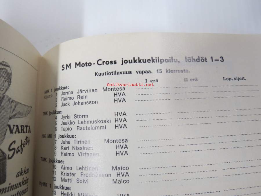 SM Moto-Cross joukkuekilpailu Artukaisissa 25.8.1968 -käsiohjelma