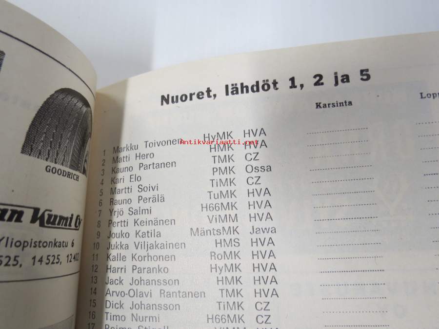 SM Moto-Cross joukkuekilpailu Artukaisissa 25.8.1968 -käsiohjelma