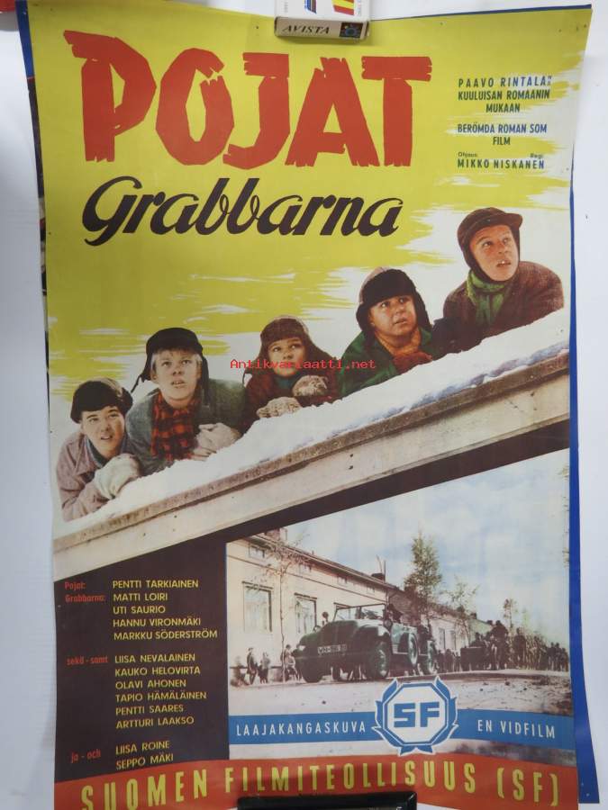 Pojat - Grabbarna -elokuvajuliste, ohjaus MIkko Niskanen, pääosissa Pentti Tarkioinen, (Vesa-)Matti Loiri, Uti Saurio, Hannu Vironmäki, Markku Söderström