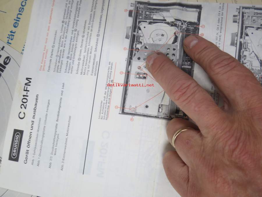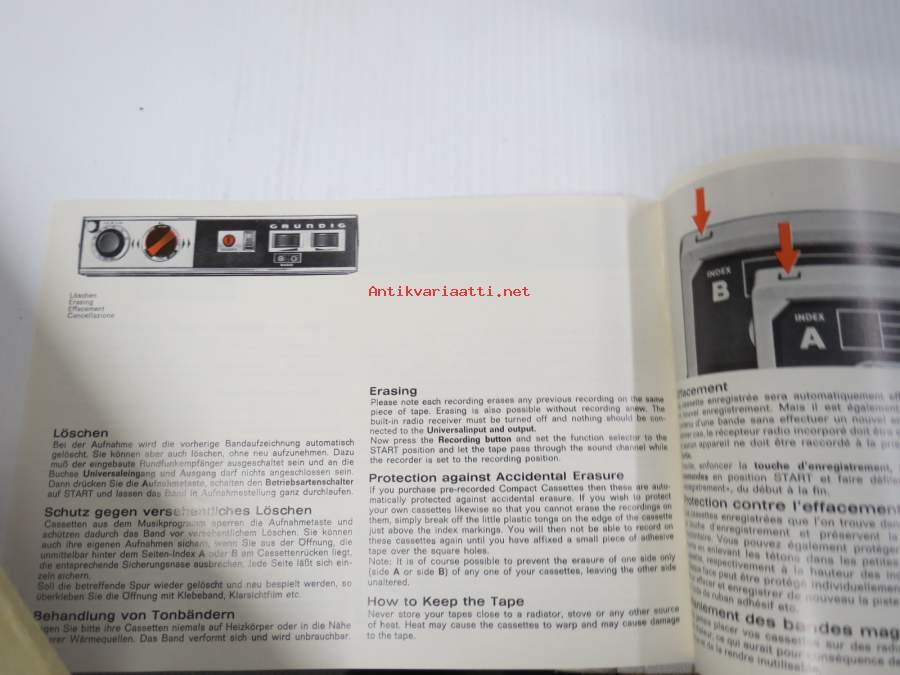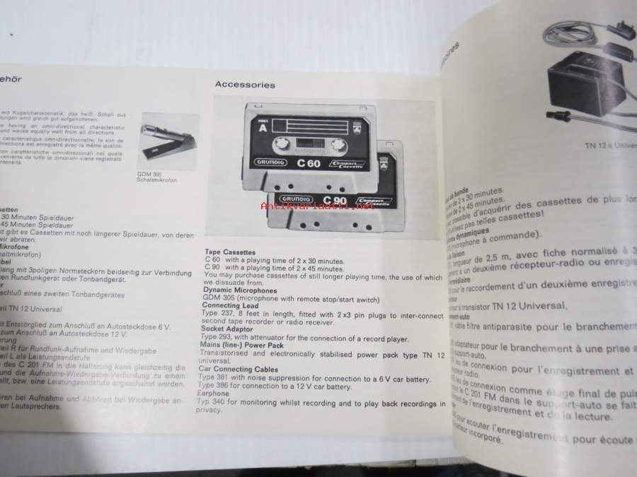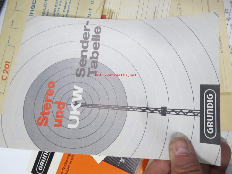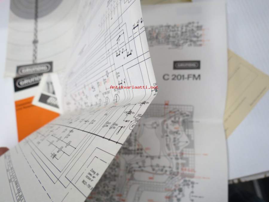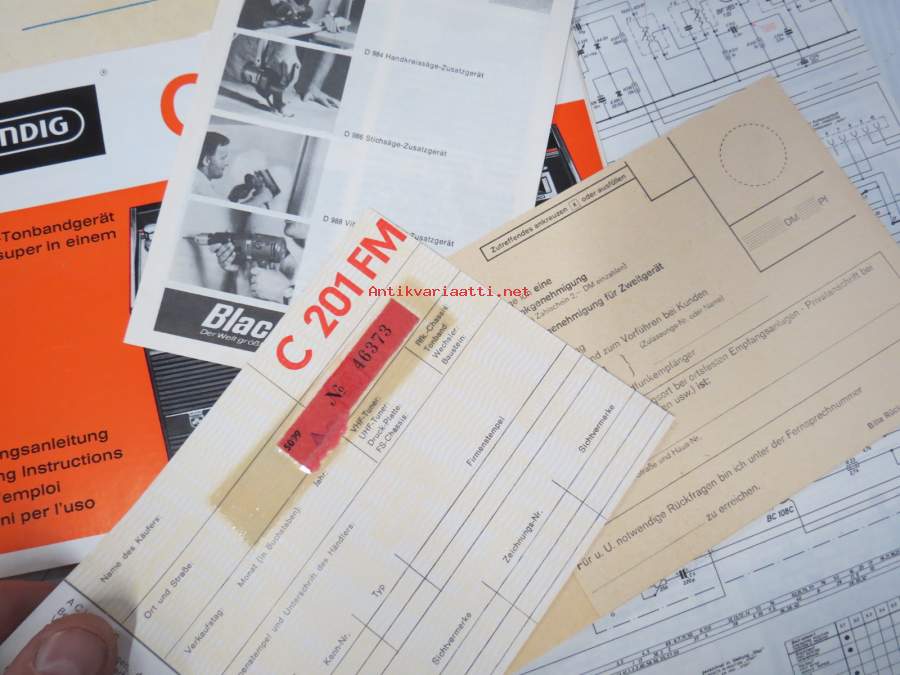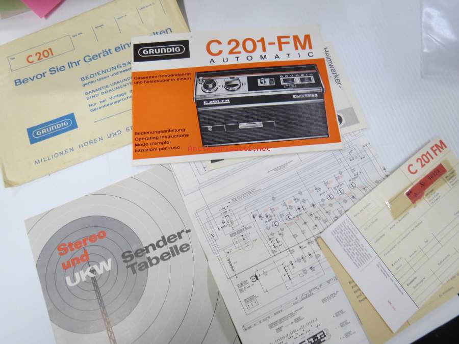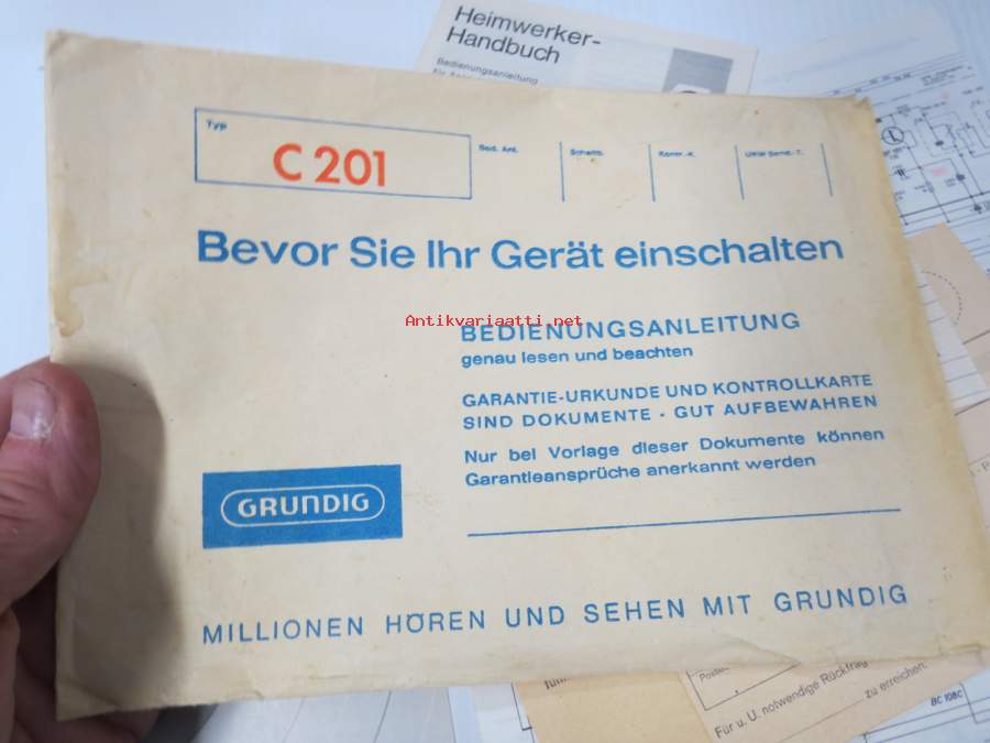 Grundig C201-FM radiokasettisoitin -alkuperäiset käyttöohjeet, piirikaaviot ym. paperit, jotka kuoressa olleet mukana toimituslaatikossa