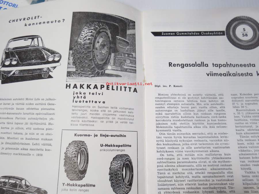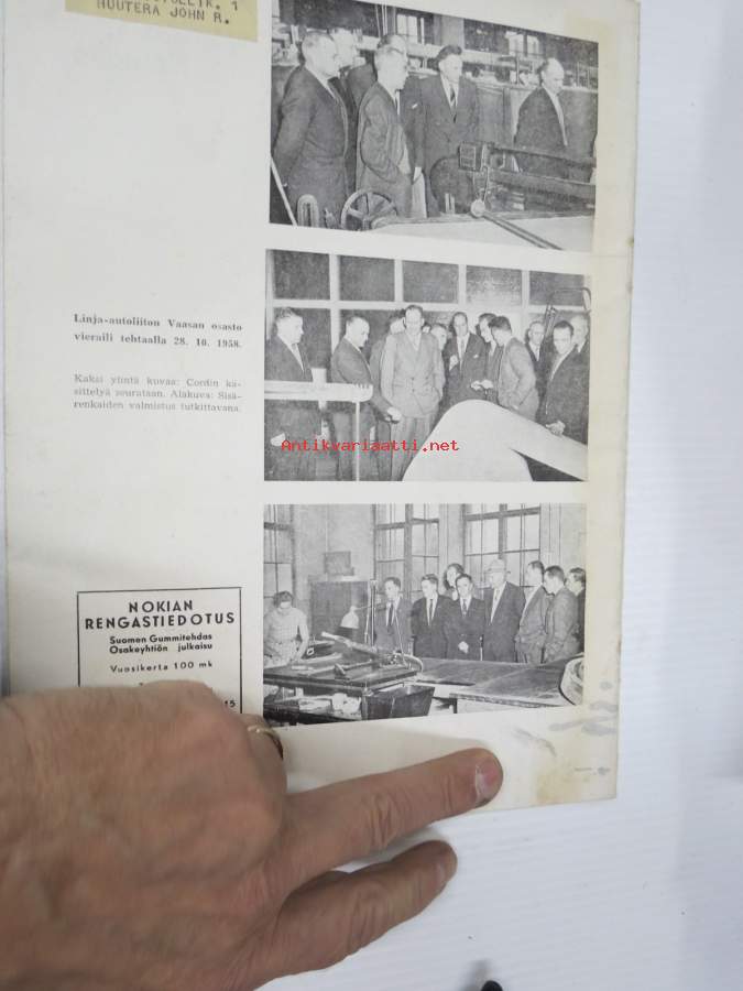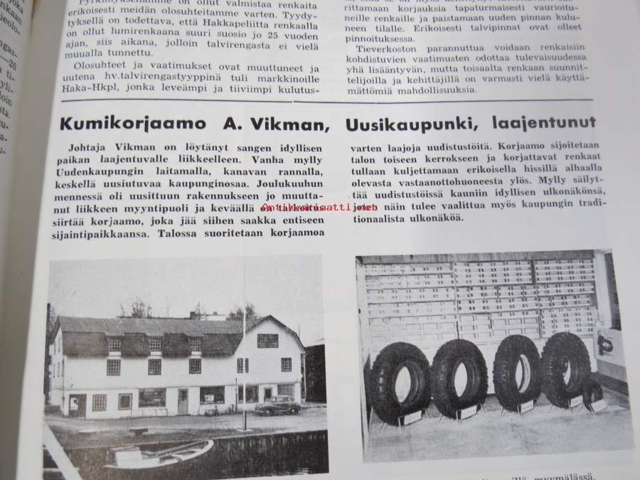 Nokian rengastiedotus 1958 nr 5, Rengasalan kehitys, Kumikorjaamo A. Vikman Uusikaupunki laajentunut, Ulkorenkaan valmistus, Rengaskorjaamon ulkonäkö, ym.