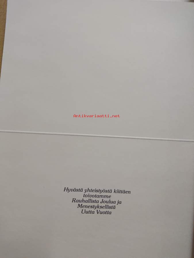 15 kpl postikortteja tekstillä: Hyvästä yhteistyöstä kiittäen toivotamme Rauhallista Joulua ja Menestyksellistä Uutta Vuotta