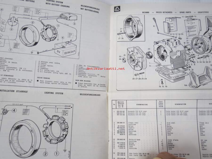 Lombardini LDA 96, 97, 100, 820 Uso - Manutenzioni / Use & Maintenance - Spare Parts / Bedienung - Wartung - Erzarzteile / Emploi -käyttöohjekirja + varaosaluettelo