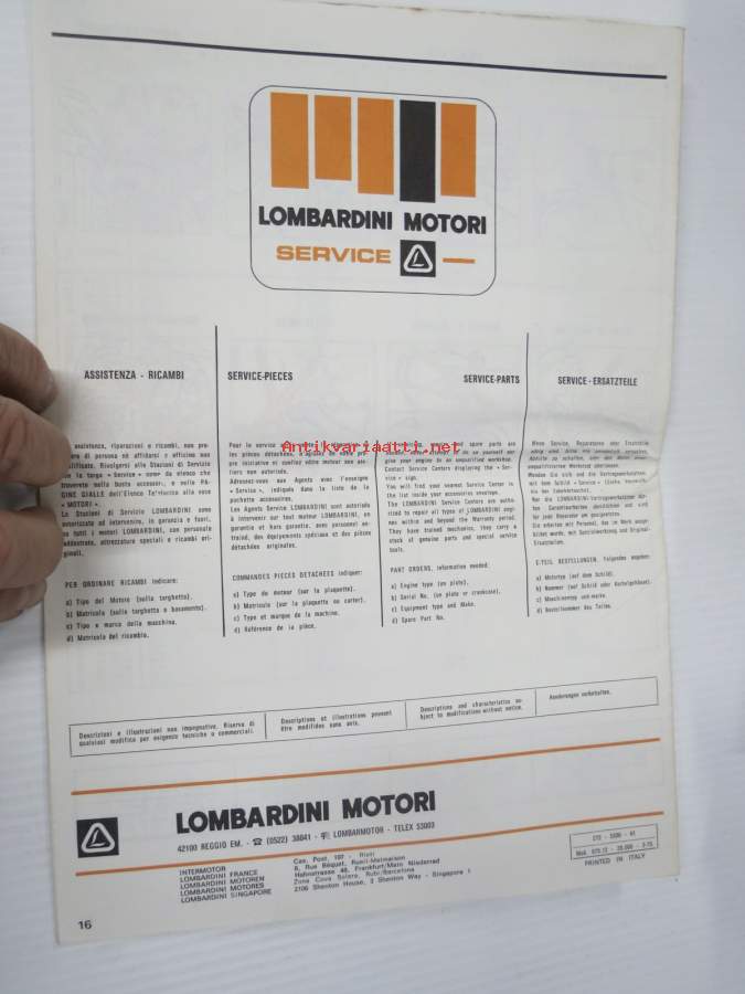 Lombardini Motori serie 400 LA-LAP 400, 490, 490SIN, 510 - LAL 400 Manuale D´officina - shop manual in italian / korjaamokäsikirja italiaksi