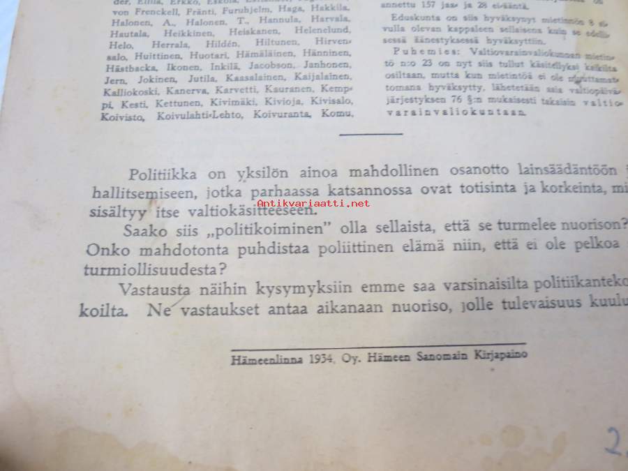 Mitä Eduskunnassa puhutaan sarja II.2 - Eduskunnassa joulukuulla 1933 käyty keskustelu koululaisten politikoinnista