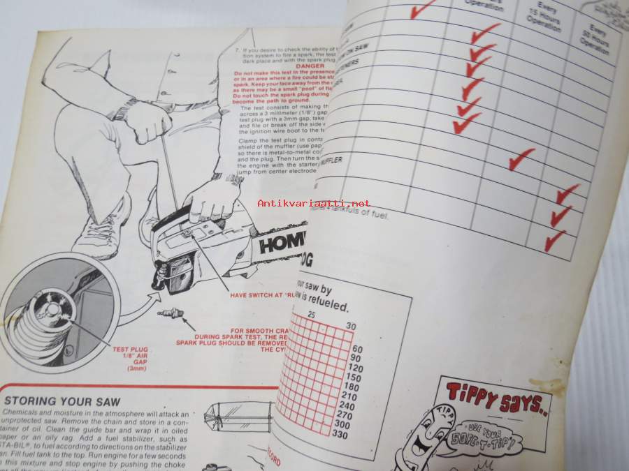 Homelite moottorisaha - Käyttö, huolto. Käyttöohjekirjanen.
