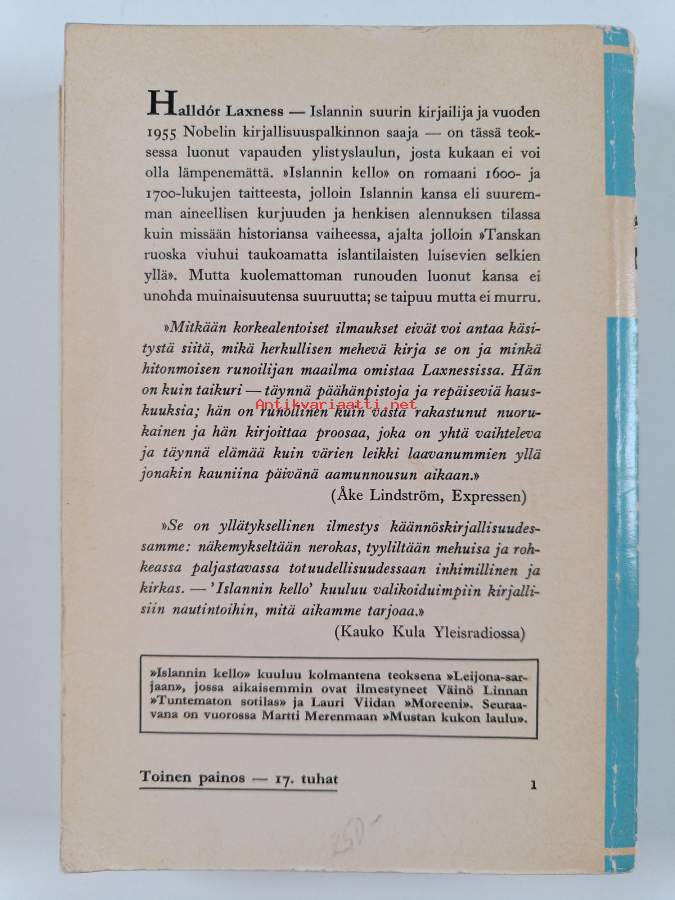 :Islannin kello : romaani / Halldór Kiljan Laxness ; Peter Hallbergin ruotsinnoksesta suom. Kristiina Kivivuori ; runot suom. Kirsi Kunnas.