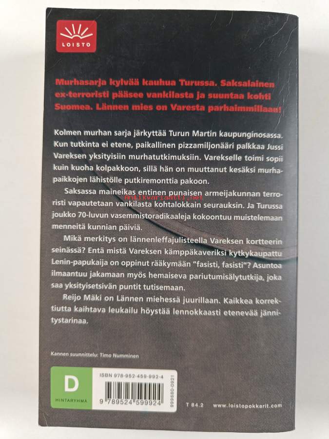 Hyvä. Pientä taitejälkeä kansissa, pienoista kulumaa, selkämyksessä hieman vinoutta, selkämyksessä lukutaittumaa