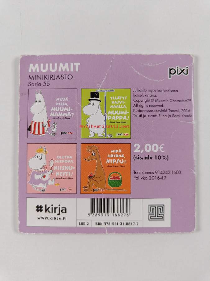 Muu(t) tekijä(t): Tove Jansson, Sami KaarlaAsiasanat: lastenkirjallisuus, muumit, etsintä, kuvakirjat, paksulehtiset kirjat