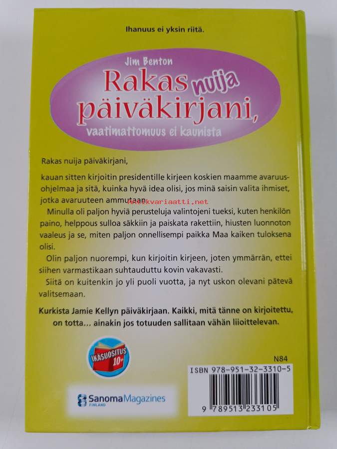 Muu(t) tekijä(t): Jani BohmSarja: Jamie Kelly: elämäni koululaisena osa 12Alkuteos: Dear dumb diary, me! (Just like you, only better)
