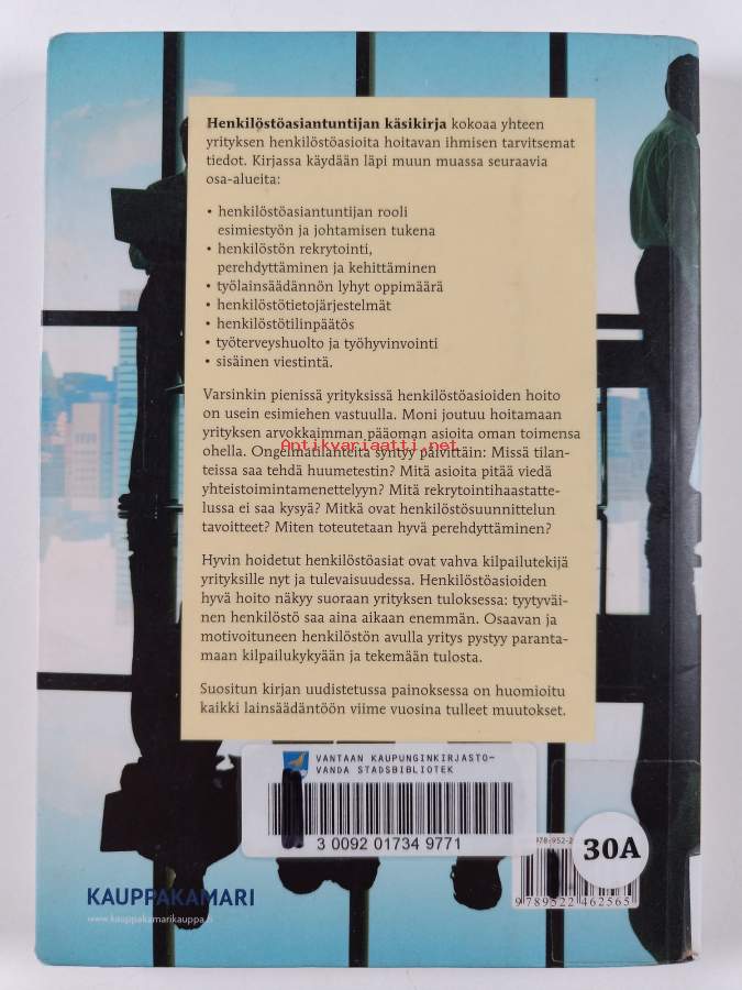 Asiasanat: yritykset, lainsäädäntö, kehittäminen, työoikeus, palkitseminen, henkilöstöjohtaminen, henkilöstöhallinto, organisaatiot, työhyvinvointi, työsuhde, henkilöstöpolitiikka, henkilöstö, työntekijät, irtisanominen, henkilöstöhankinta, henkilöstöstrategiat, työterveyshuolto, rekrytointi, henkilöstötilinpäätös, henkilöstösuunnittelu, perehdyttäminen, työpaikkakoulutus, sisäinen viestintä