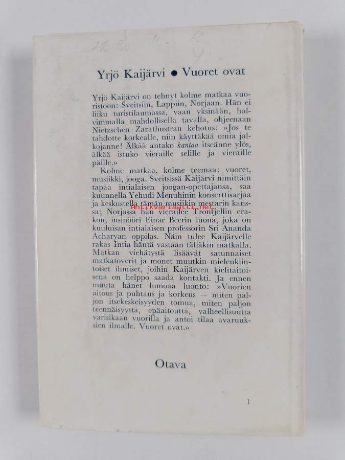 Hyvä. Tarkempi kuntoluokka: K3+ ; Pienoista tahraisuutta takakannessa, selkämyksessä hieman vinoutta. Kansipaperin kunto: joitain repeämiä/kulumaa