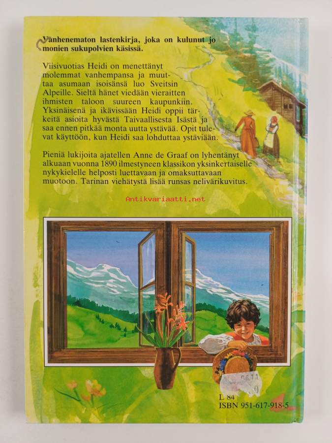 Muu(t) tekijä(t): Heljä Meuronen, Chris MolanMerkinnät: omistajamerkintäSarja: Lastenkirjojen klassikkoja 1Alkuteos: HeidiAsiasanat: käännökset, suomenkielinen kirjallisuus, kuvakirjat