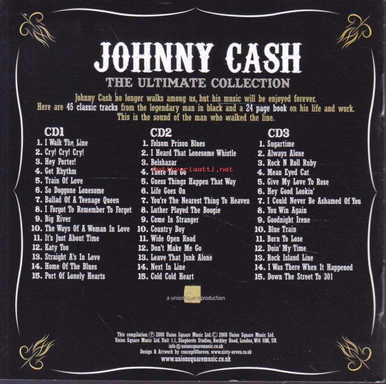 CD - Johnny Cash - The Ultimate Collection - 3 CD:n kokoelma peltirasiassa. Lisänä 24-sivuinen kirjanen.