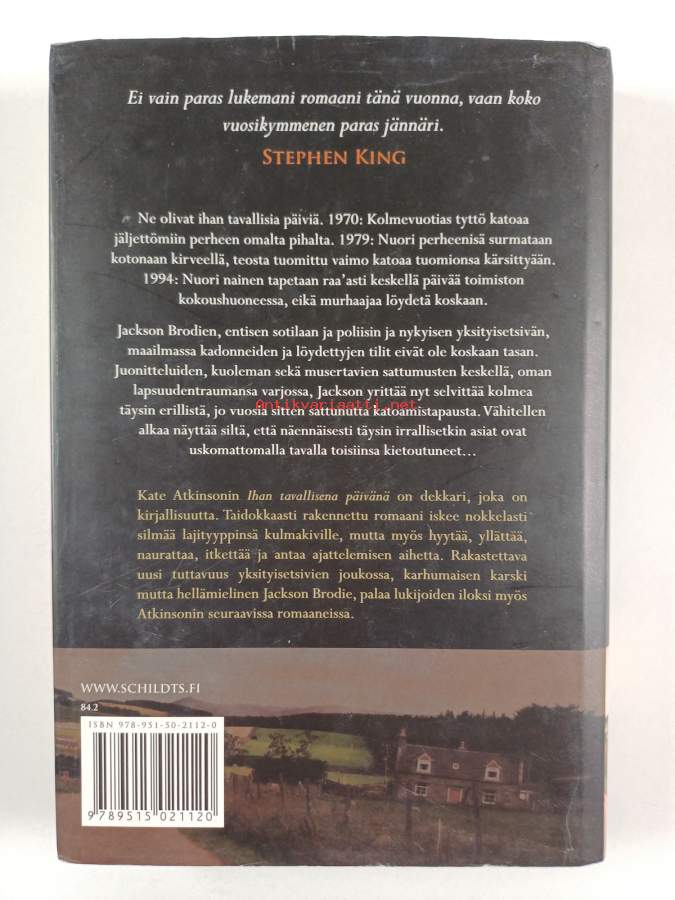 Hyvä. Pienoista tahraisuutta, hieman kulumaa, pienoista kolhua selkämyksen päissä, edessä hintalapun jäämää. Kansipaperin kunto: jonkin verran kulumaa/pienoisia repeämiä