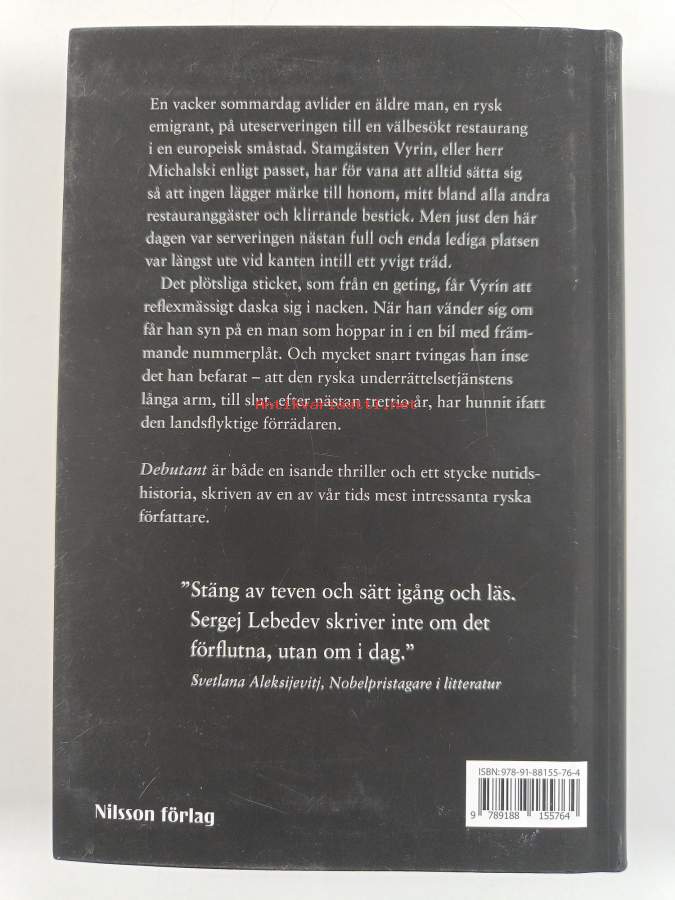 Muu(t) tekijä(t): Nils HåkansonAlkuteos: DebutantAsiasanat: flykt, vetenskapsmän, utveckling (verksamhet), forskare, laboratorier, ryssar, gaser, kemiska vapen, kontakter