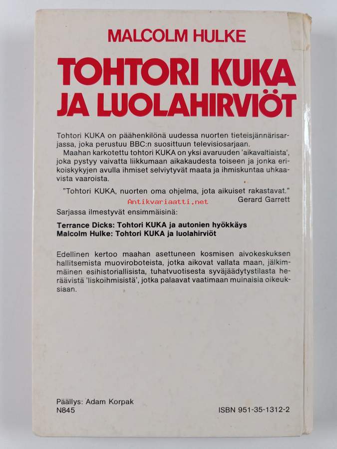 Muu(t) tekijä(t): Renne (suom.) NikupaavolaMerkinnät: omistajamerkintäSarja: Tohtori Kuka 2Alkuteos: Doctor Who and the Cave-MonstersAsiasanat: Doctor Who