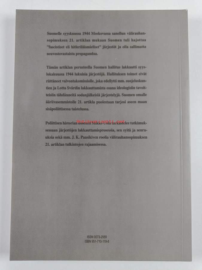 "Suomi sitoutuu hajottamaan..." : Järjestöjen lakkauttaminen vuoden 1944 välirauhansopimuksen 21. artiklan perusteella
