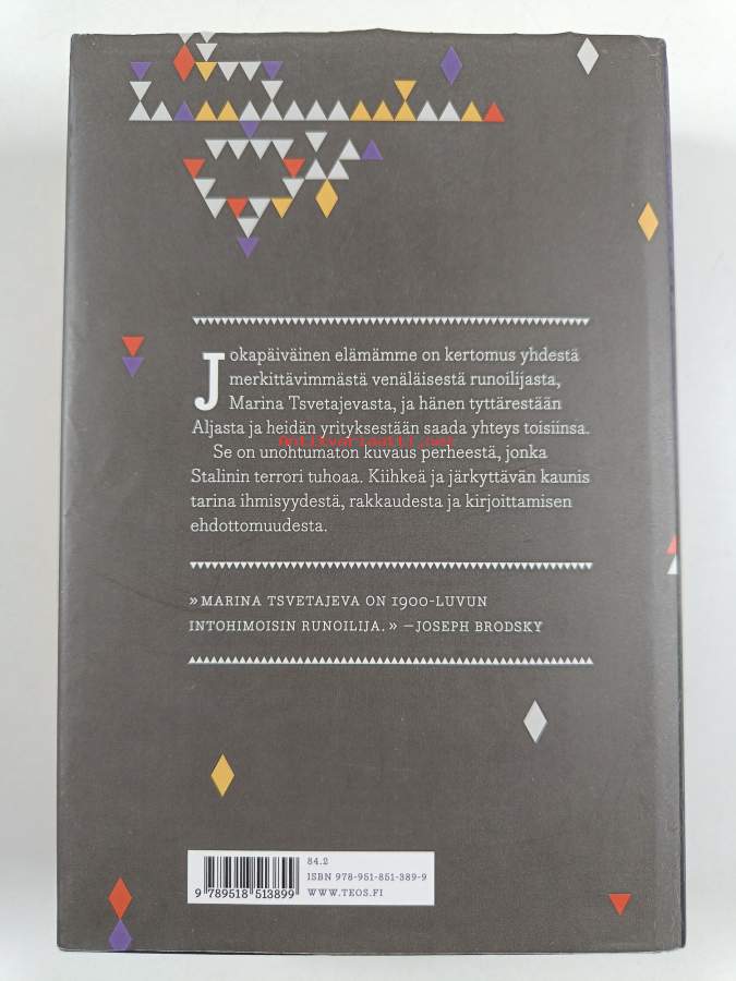 Jokapäiväinen elämämme, 2013.Finlandia-voittaja. Jokapäiväinen elämämme on kertomus ainutlaatuisesta runoilijasta Marina Tsvetajevasta ja hänen tyttärestään Aljasta