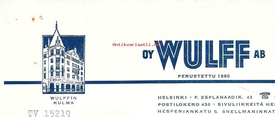 Puutavaramies ja laskuviivotin, Wulff Osakeyhtiö mainos (yhden sivun mainos)
