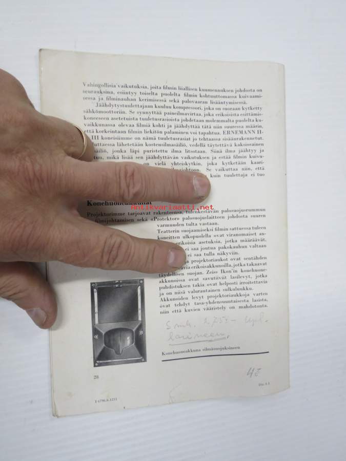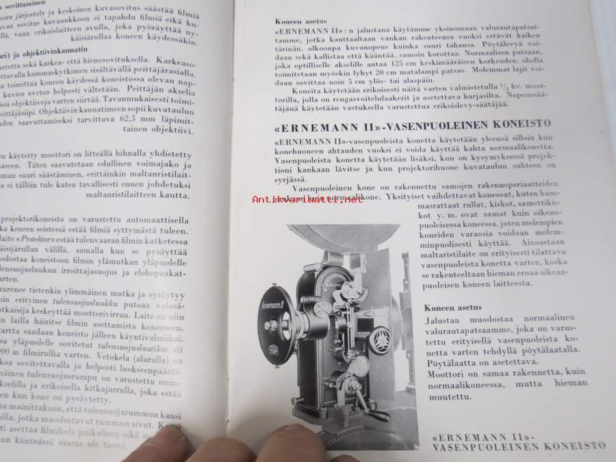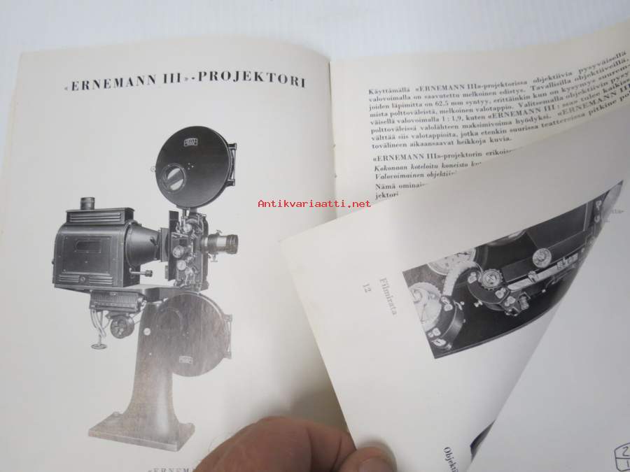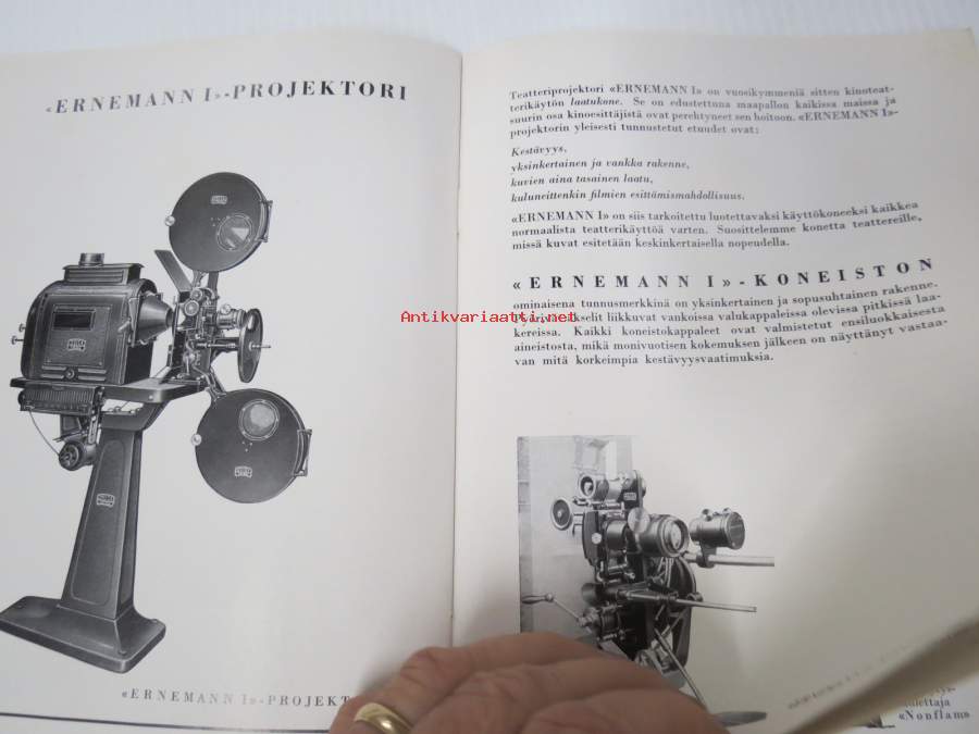 Kinoteatterikoneet (elokuvakoneet) Zeiss-Ikon / Ernemann II ja III, Hahn II, Ernemann I -esitekirjanen vuodelta 1931