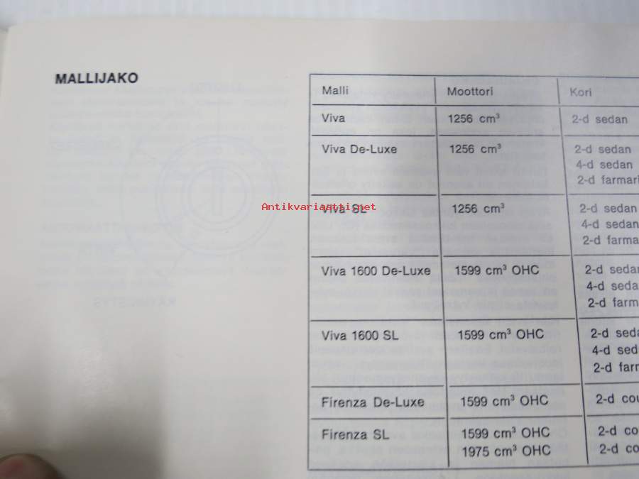Vauxhall Viva & Firenza -käyttöohjekirja