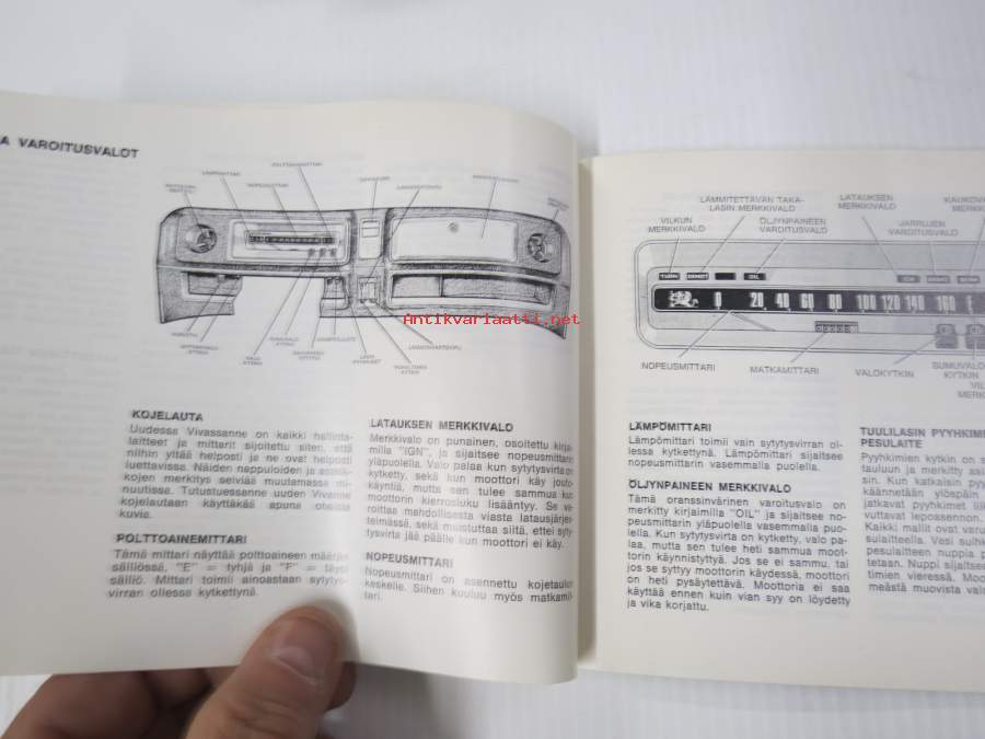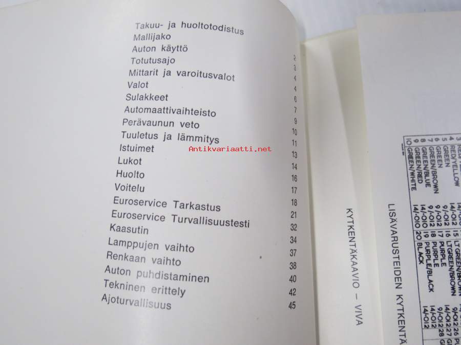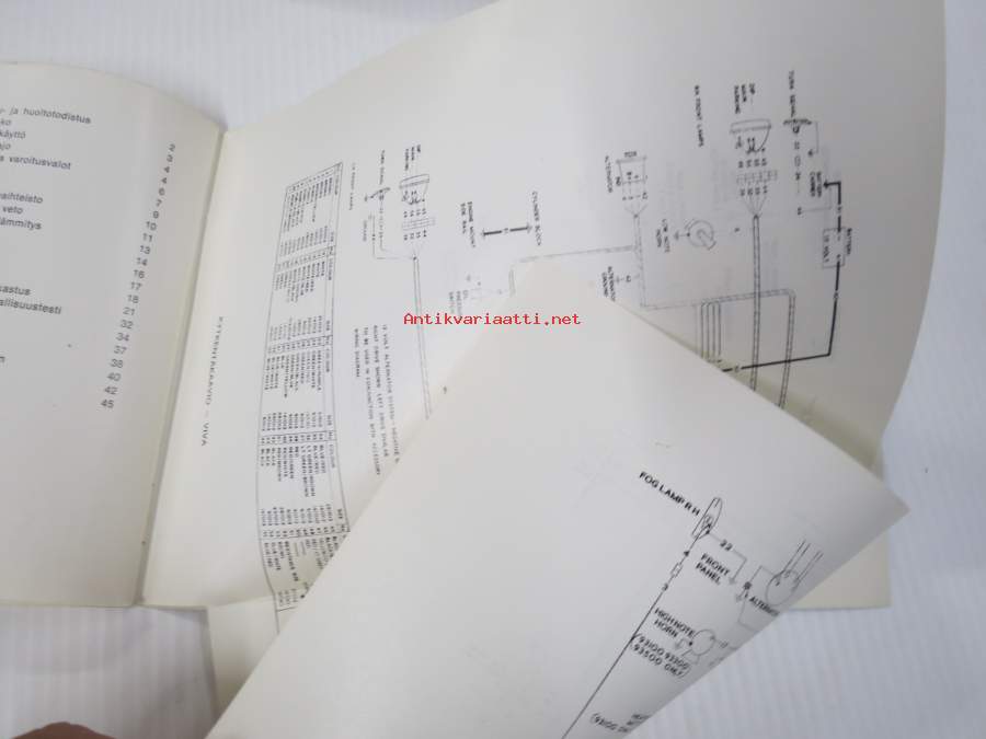 15 x 21 cm omistajan käsikirja, sisältää sähkökaavion.
