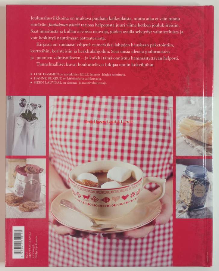 Kirjassa on runsaasti vihjeitä esim lahjojen paketointiin, kortteihin, koristeisiin ja herkkulahjoihin. Myös jouluruokien ja juomien reseptejä.Kuvitettu.Dimensiot: 27x21cm