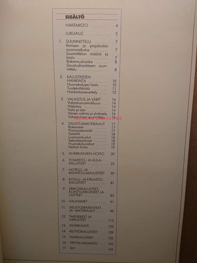 Toimisto- ja yleisötilojen kalusteet ja tarvikkeet 1988-1989