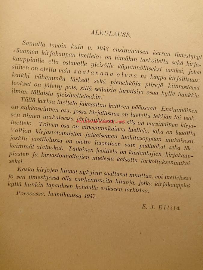 Suomen kirjakaupan luettelo 1947 : kirjakauppojen välityksellä tammikuun 1 päivänä 1947 saatavana ollut suomenkielinen kirjallisuus