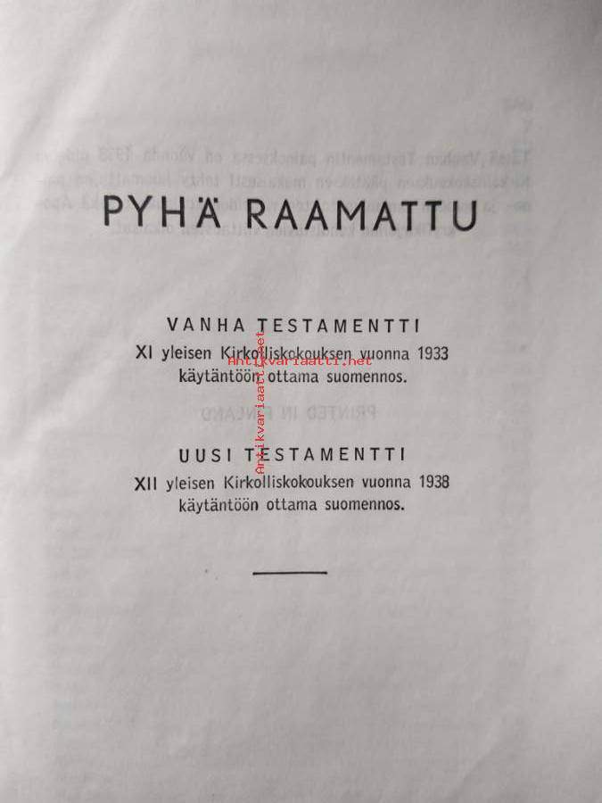 Pyhä Raamattu keskikoko (suomennokset VT 1933/ UT 1938)