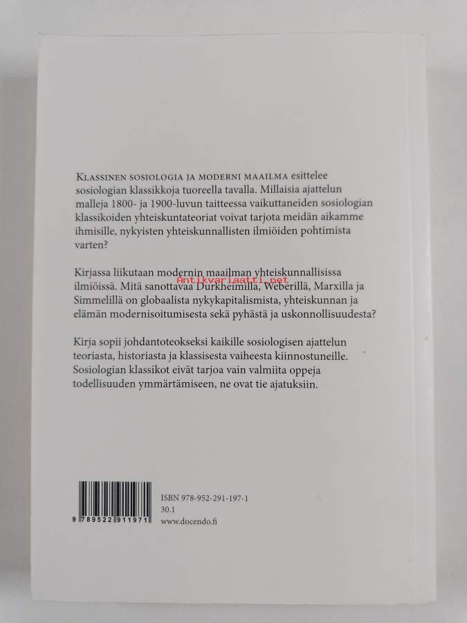 Muu(t) tekijä(t): Pertti JokivuoriAsiasanat: elämäntapa, kaupunkikulttuuri, yhteiskunnallinen muutos, yhteisöllisyys, klassikot, taloudelliset kriisit, kaupunkisosiologia, kulttuurisosiologia, markkinatalous, kapitalismi, sosiaaliset suhteet, yhteiskuntafilosofia, länsimainen kulttuuri, globalisaatio, suurkaupungit, sosiologia, raha, yhteisöt, rahamarkkinat, yhteiskuntateoriat, moderni, rationaalisuus, uskontososiologia, modernisaatio, taloussosiologia, vieraantuminen, kulttuurikritiikki, yksilöllistyminen, kulutussosiologia, uskonto ja uskonnot, anomia