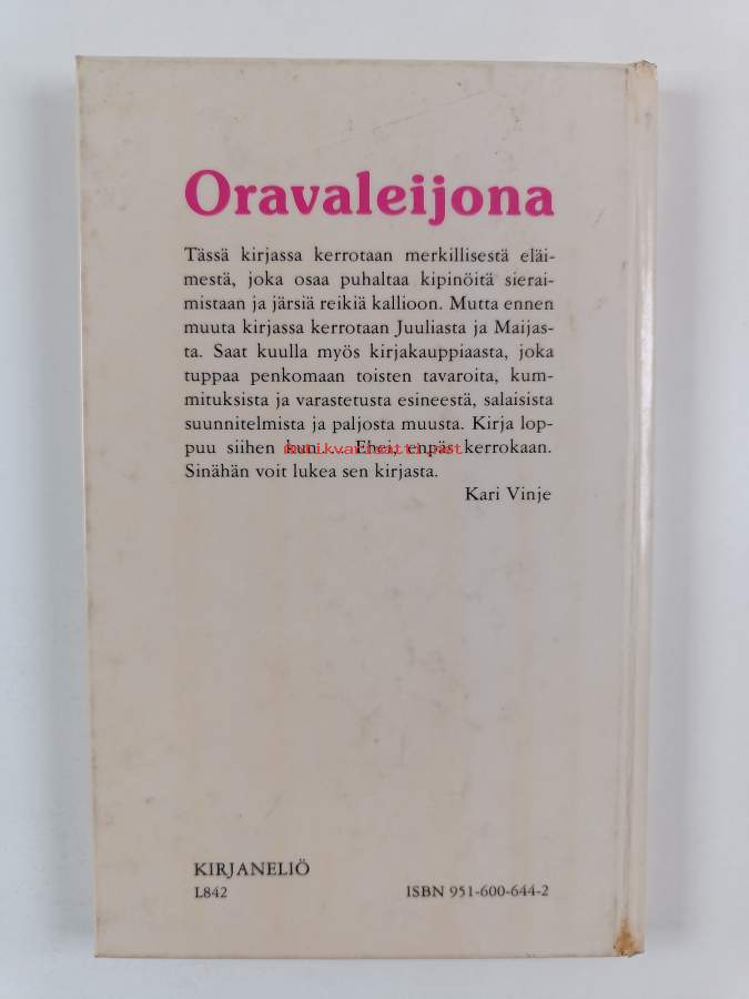 Tyydyttävä. Hieman kulumaa, selkämyksessä hieman vinoutta, kontaktimuovipäällystys, kirjaston poistokirja