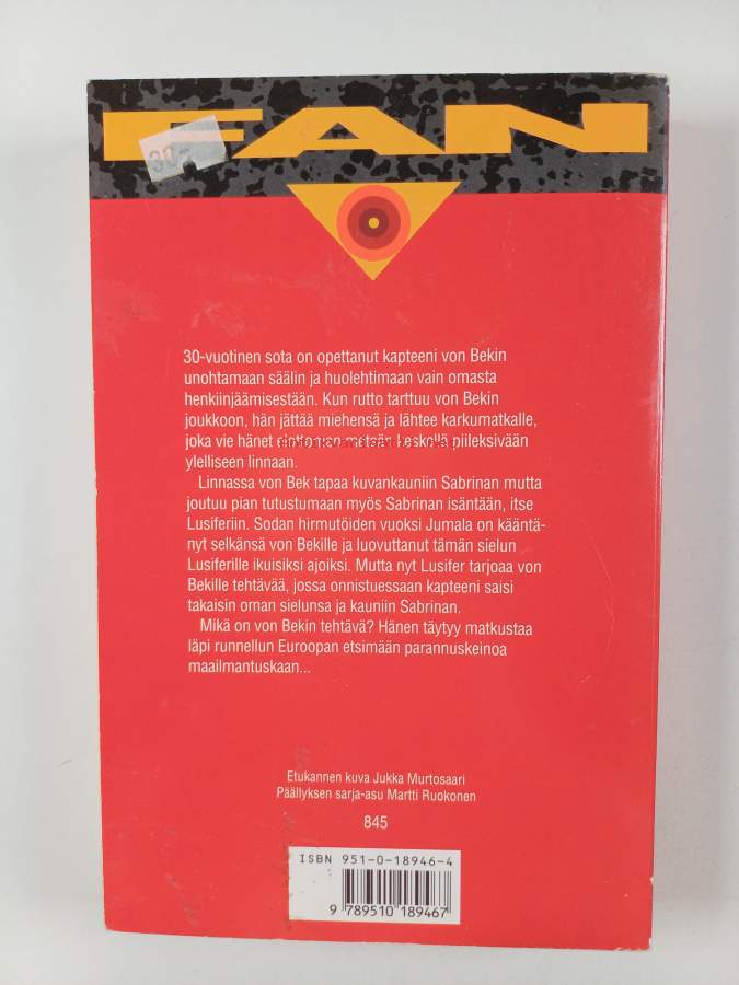 Hyvä. Tarkempi kuntoluokka: K3- ; Pientä kulumaa, jonkin verran tahraisuutta kansissa, selkämyksessä lukutaittumaa, takana vanha hintalappu