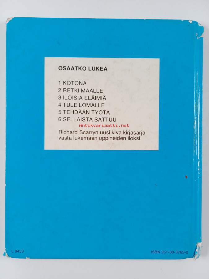 Tyydyttävä. Tarkempi kuntoluokka: K2- ; Jonkin verran repeämää selkämyksen päissä, jonkin verran rispaantumaa kulmissa, jonkin verran kulumaa, pienoista tahraisuutta, sidos löystynyt ja näkyvissä