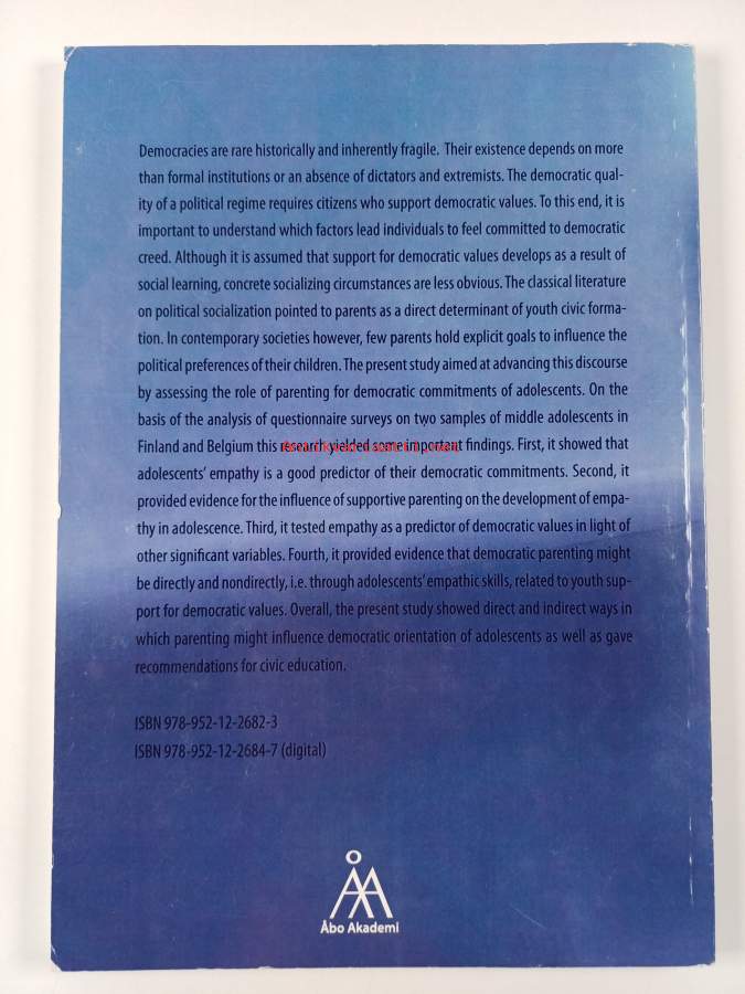 Asiasanat: demokratia, vanhemmuus, vaikuttaminen, sosialisaatio, socialisation, demokrati, föräldraskap, påverkan, arvokeskustelu, asennekasvatus, värdediskussion, attitydfostran