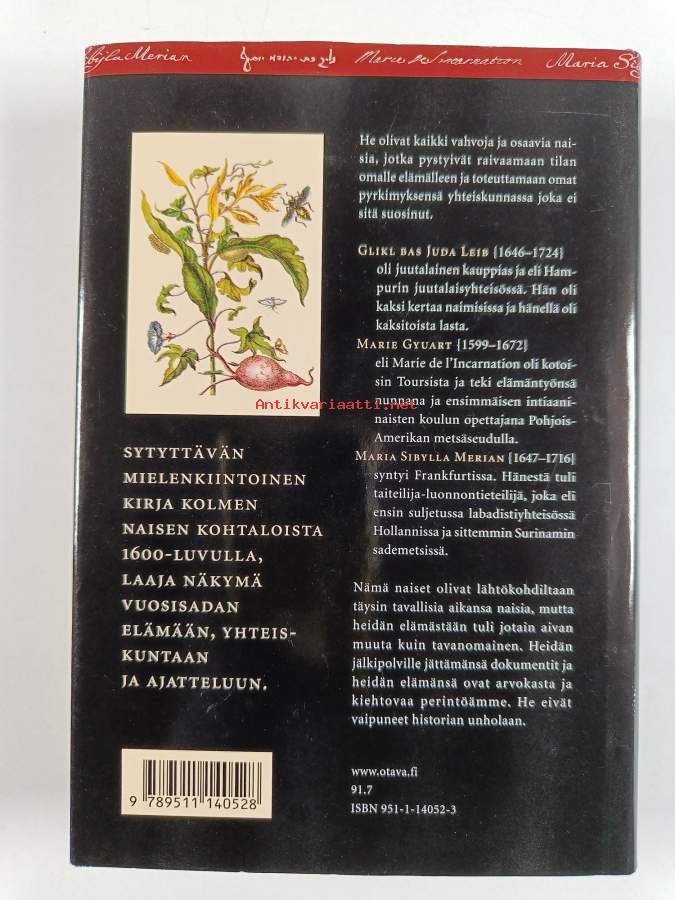 Muu(t) tekijä(t): Jaana (suom.) Iso-MarkkuMerkinnät: omistajamerkintäAlkuteos: Women on the Margins, Three Seventeeth-Century LivesAsiasanat: naiset, naisen asema, naishistoria, luonnontieteilijät
