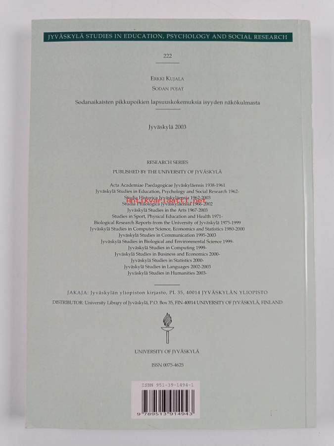 Sarja: Jyväskylä studies in education, psychology and social research 222Asiasanat: pojat, sota-aika, lapsuus, tunne-elämä