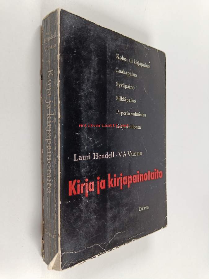 Muu(t) tekijä(t): V A. VuorioMerkinnät: omistajamerkintäAsiasanat: kirjahistoria, paperinvalmistus, kirjapainotaito, painomenetelmät, kirjansidonta