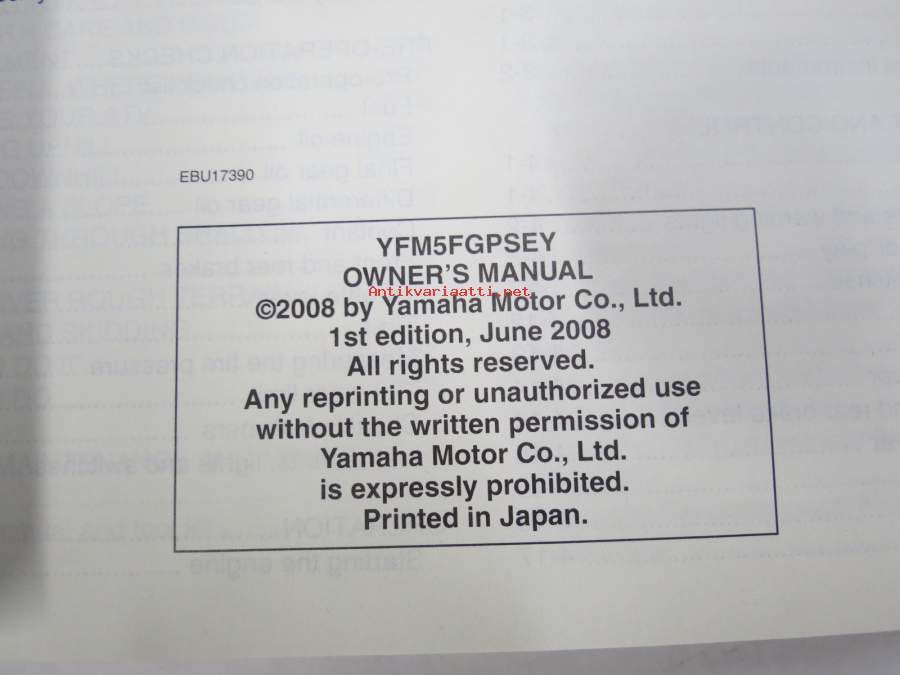 Yamaha Grizzly 550FI YFM5FGPSEY Owner´s manual, Manuel du proprietaire, Manual del propietario -mönkijä, käyttöohjekirja englanniksi, italiaksi, espanjaksi