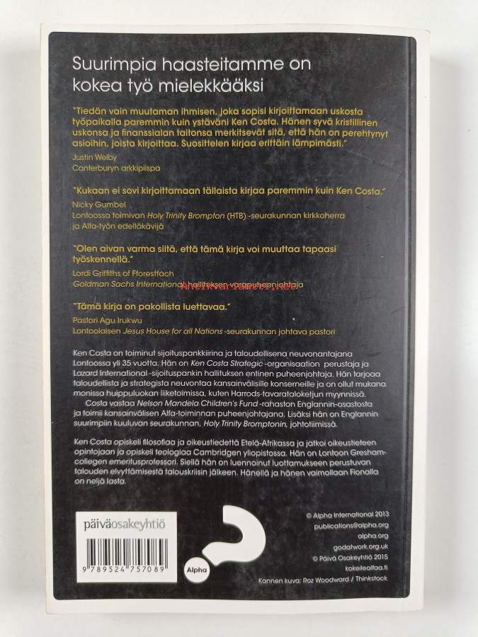 Muu(t) tekijä(t): Mirja SevonSarja: AlphaAlkuteos: God at work : living every day with purposeAsiasanat: liike-elämä, työelämä, kristinusko, kristillinen etiikka, markkinatalous, työhyvinvointi, kristityt, arvot (käsitykset)