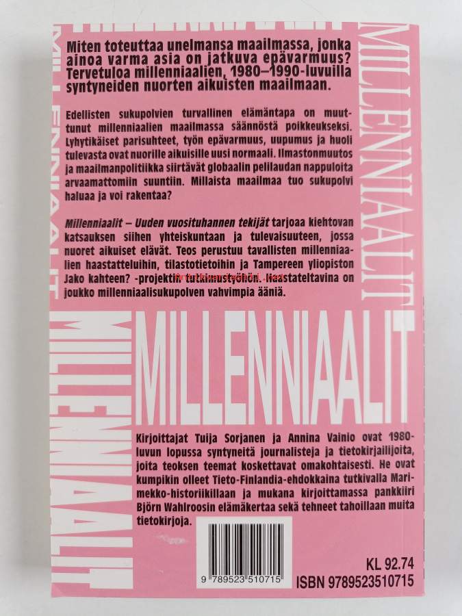 Muu(t) tekijä(t): Annina VainioAsiasanat: elämäntapa, menestyminen, yhteiskuntakehitys, työelämä, asenteet, tulevaisuus, arvot, henkinen hyvinvointi, tulevaisuudenodotukset, sukupolvet, ympäristönmuutokset, työura, 1990-luku, uhat, y-sukupolvi, sukupolvikokemukset, yksilöllistyminen
