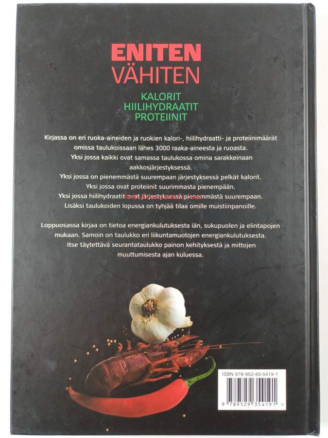 Eniten ja vähiten : kalorit, hiilihydraatit, proteiinit