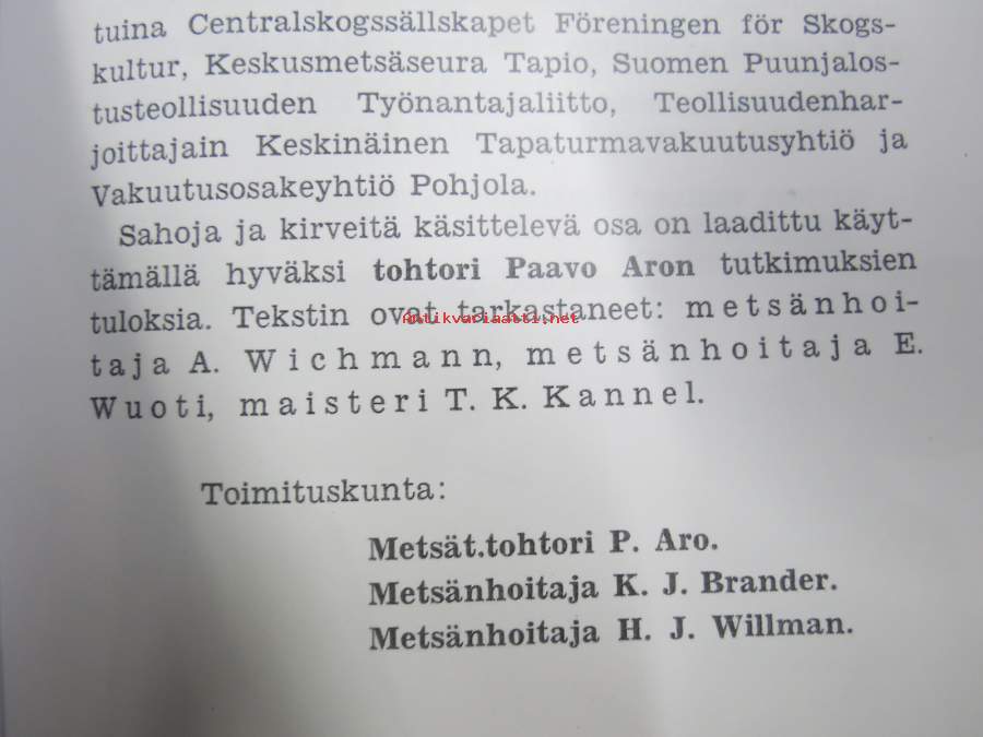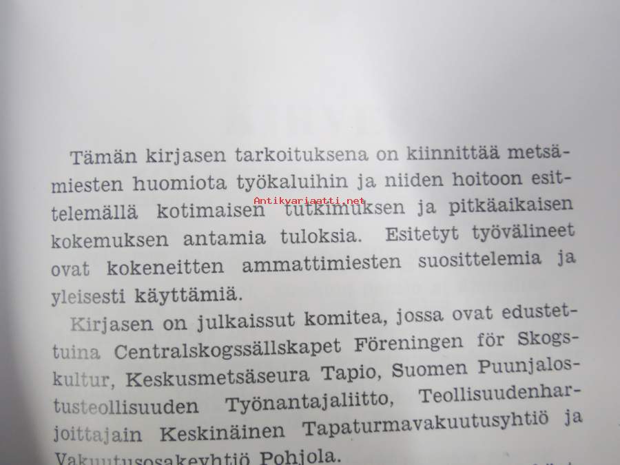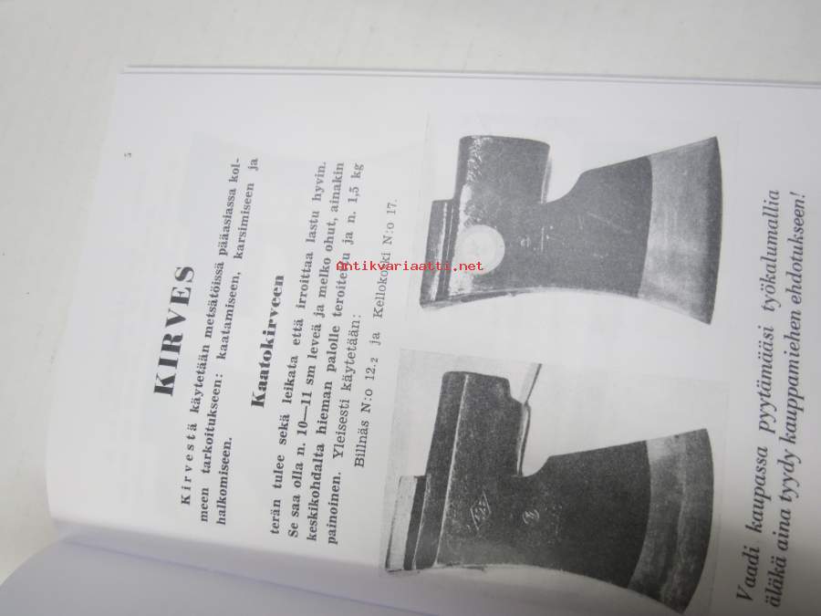 Metsätyökaluopas 1940, kirveet, sahat, kuorimisvälineet, vänkärit - hoito ja huolto - NÄKÖISPAINOS