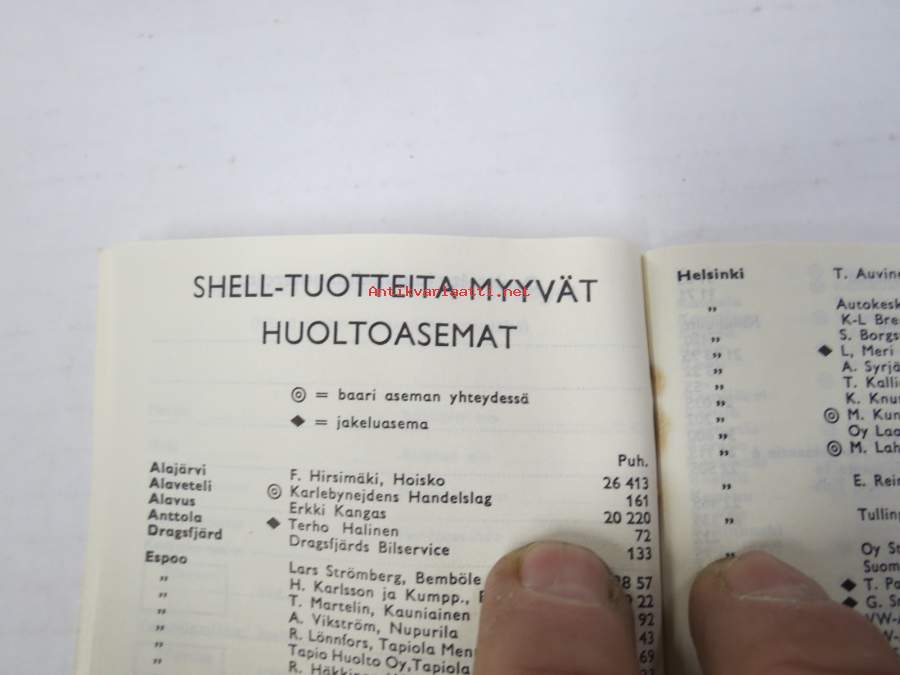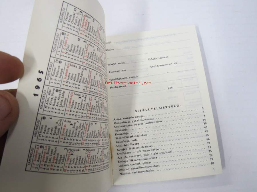 Shell autoilijan muistikirja 1965, sisältää huoltoasema- ja myyntipisteluettelon